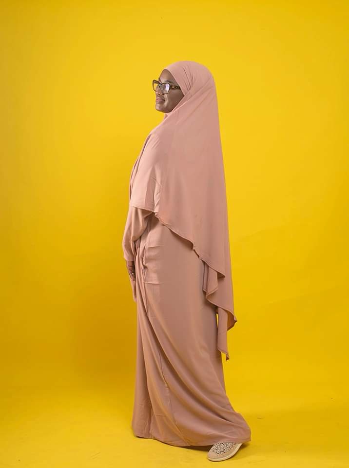 Cet ensemble se compose d’une abaya à 2 poches accompagnée d’un khimar en coupe triangle.