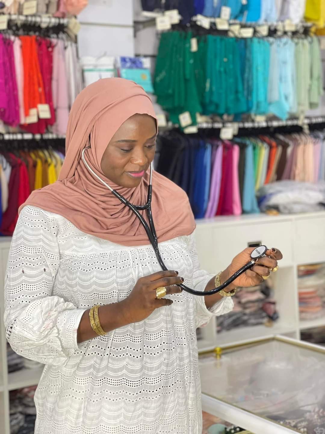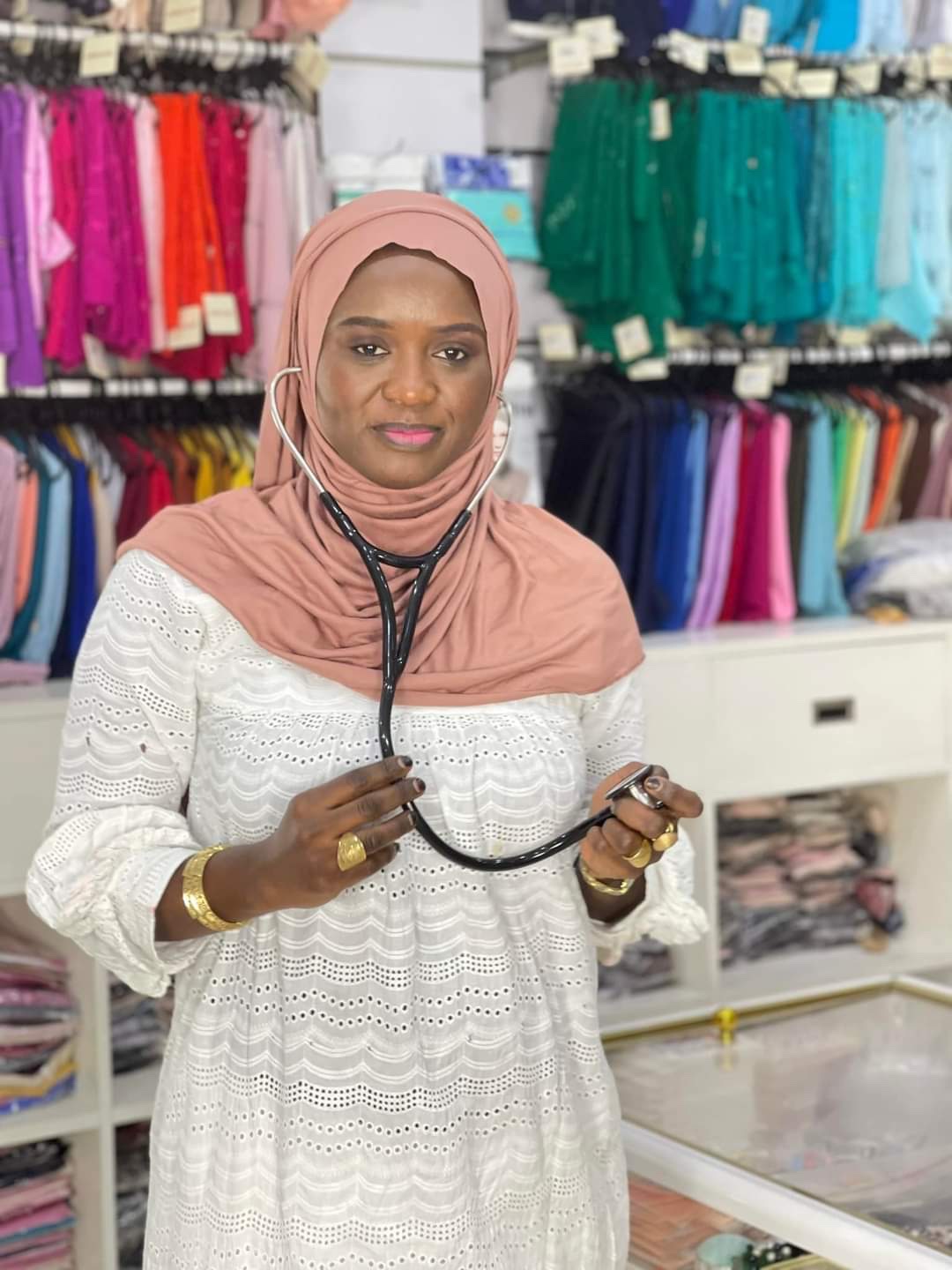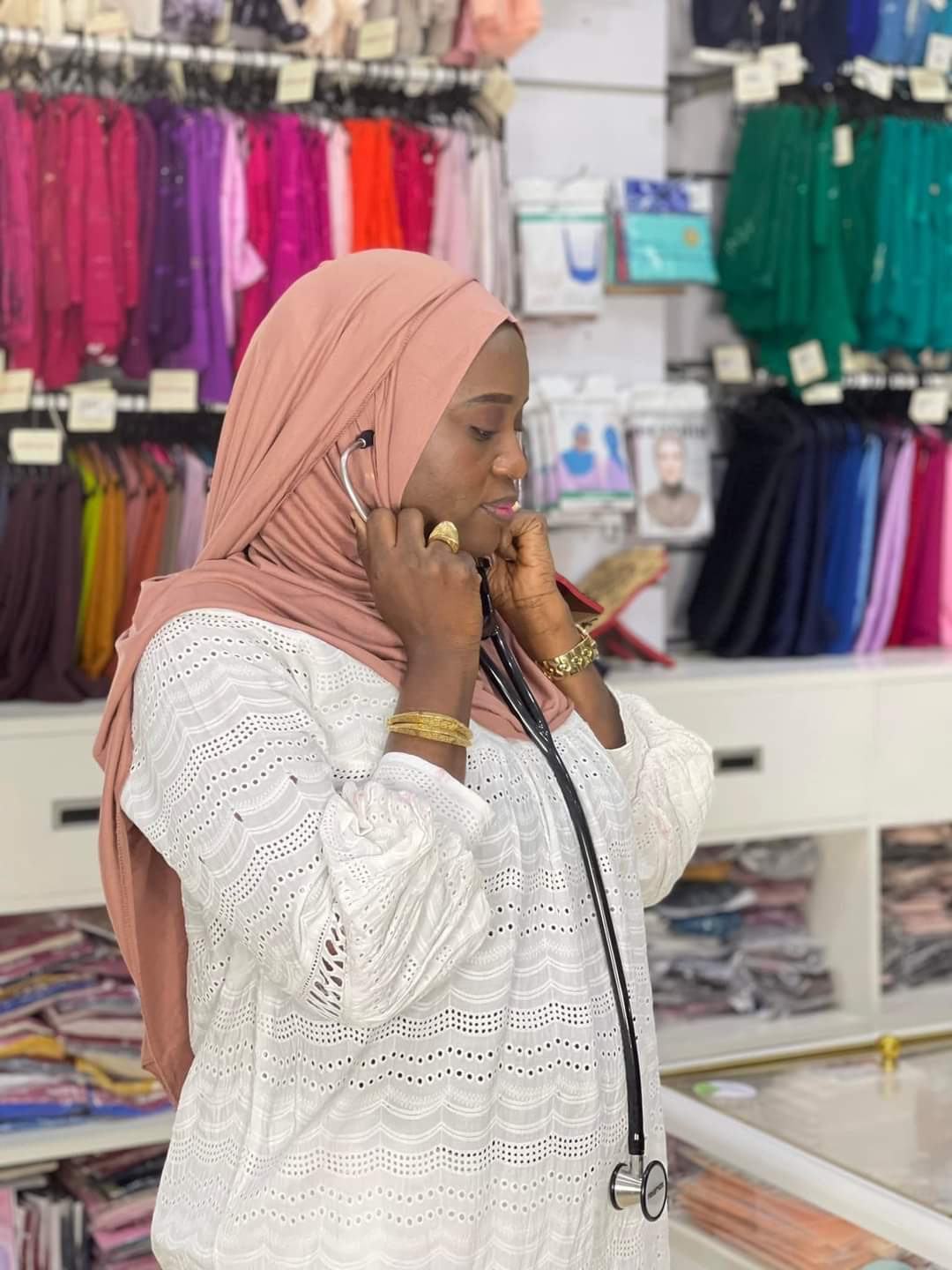 Avec ce hijab, positionnez votre stéthoscope aussi discrètement que facilement, sans repousser votre foulard !