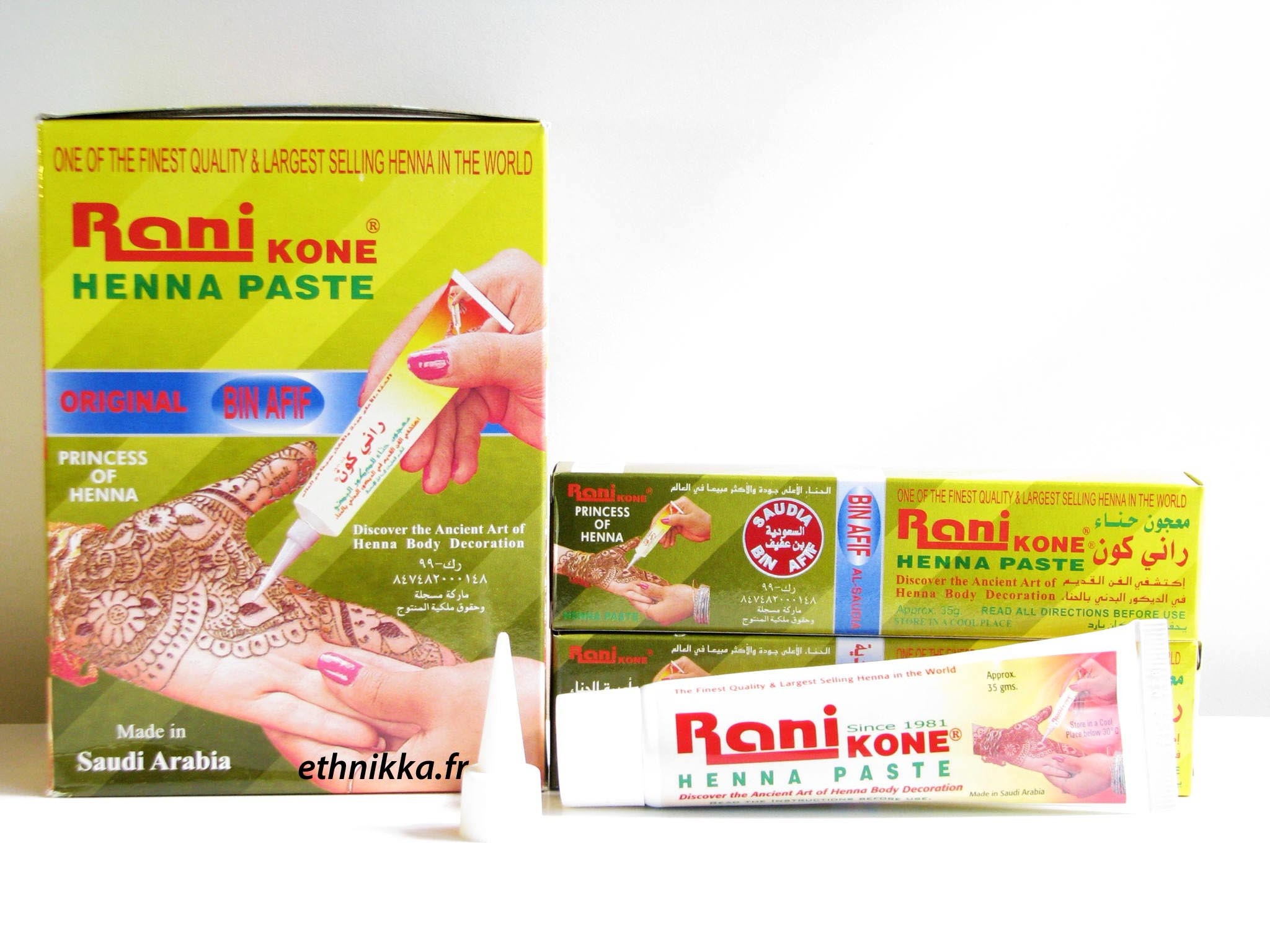 Tube de henné Rani prêt à l’emploi pour tatouage à l’unité.